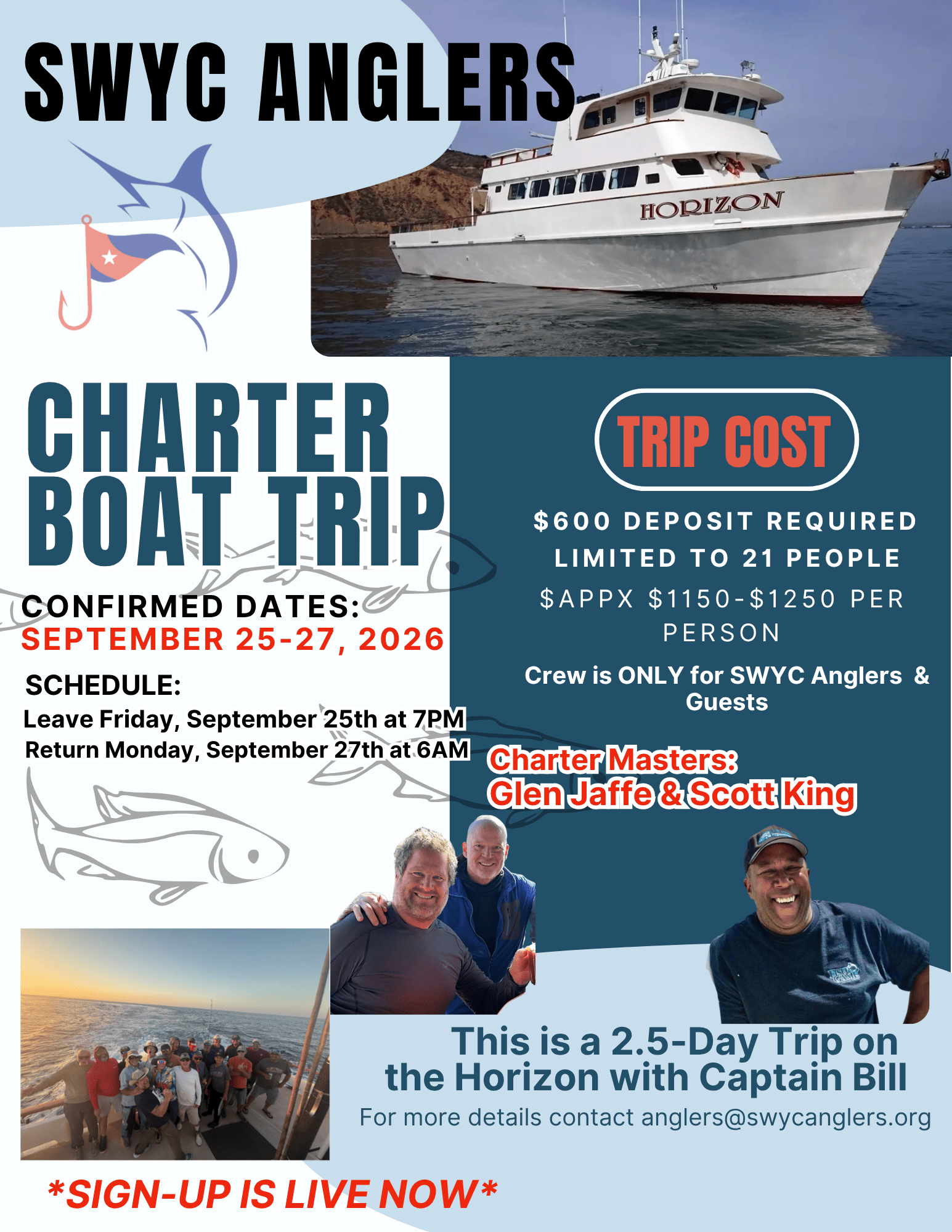 Sept 26-29th, 2025 SWYC Anglers: 2.5-Day Charter Fishing Trip.